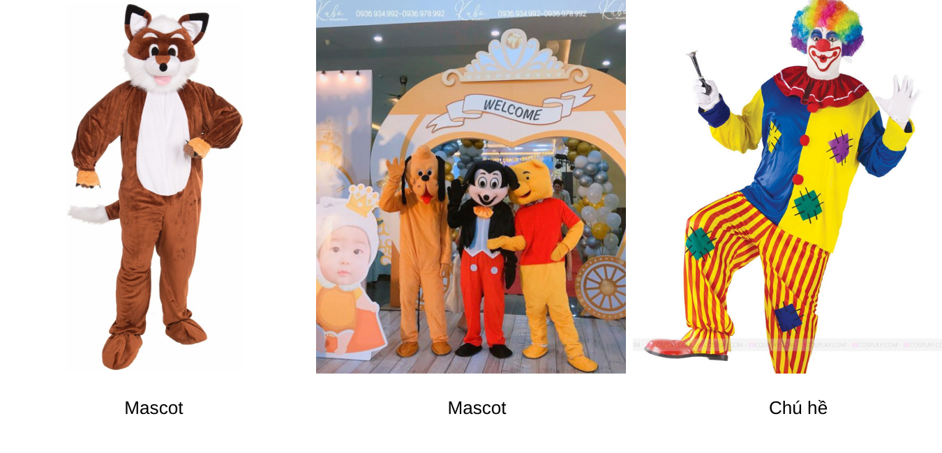 Với những Sự kiện dành cho trẻ em vào Quốc tế thiếu nhi hay Ngày hội Trăng rằm đều có sự khuấy động của các nhân vật Mascot, Chú hề… Ngoài ra còn là nhân vật chào mừng, đón khách và gây sự chú ý.